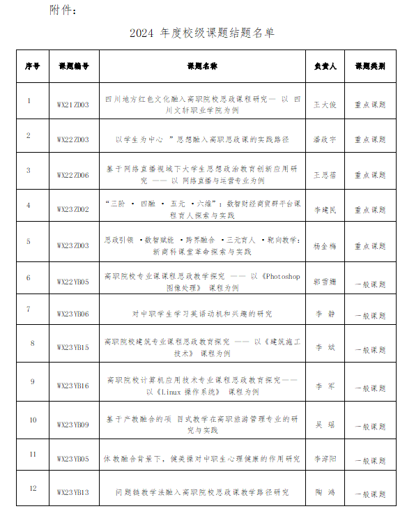 附件:2024 年度校級課題結(jié)題名單
