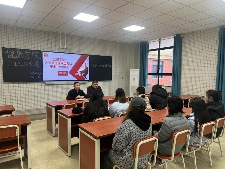 12月12日早上15:00,遂寧校區(qū)健康學(xué)院在5號(hào)教學(xué)樓413教室召開學(xué)生英語(yǔ)四六級(jí)考前安全與禮儀培訓(xùn)會(huì)議,會(huì)議由學(xué)院副院長(zhǎng)趙雙主持,院長(zhǎng)孫燕龍以及全體報(bào)考學(xué)生參會(huì)。
