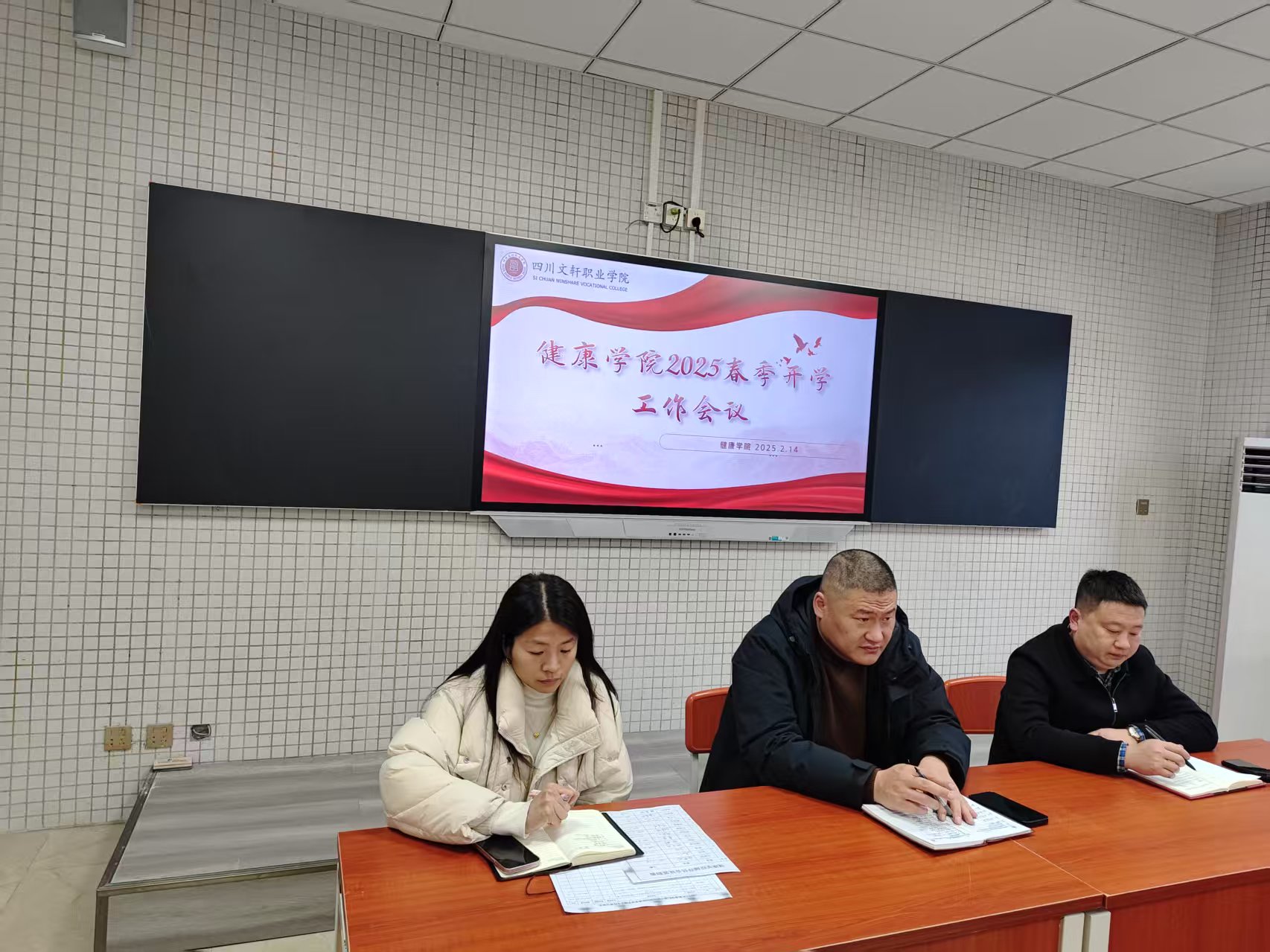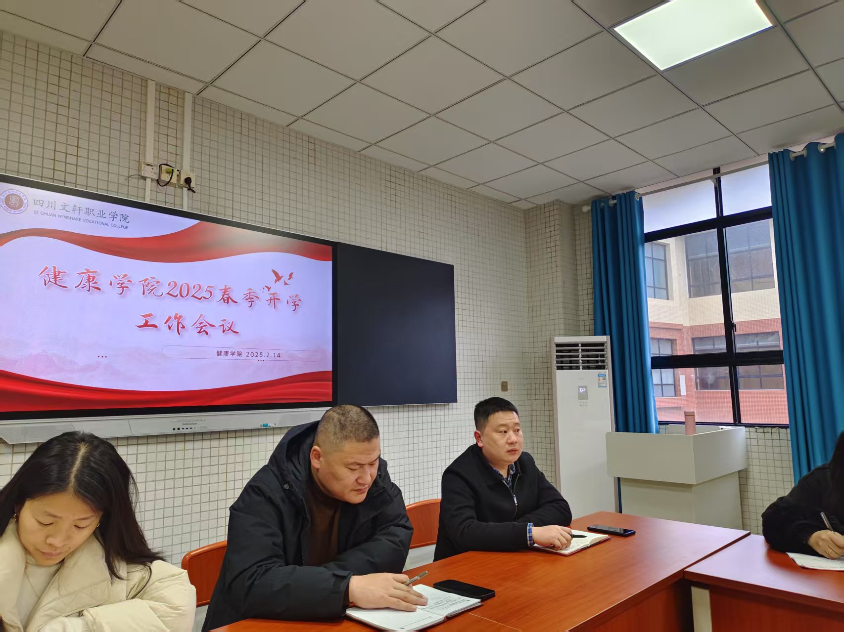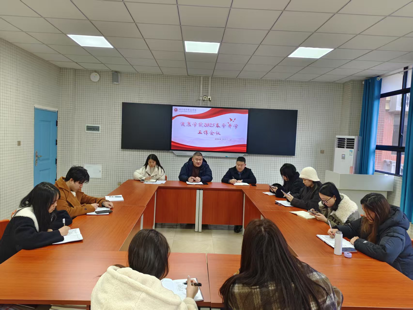 健康學(xué)院為全面部署新學(xué)期各項(xiàng)工作,確保開(kāi)學(xué)工作平穩(wěn)有序開(kāi)展,2025 年 2月 14 日下午15:00于 5 號(hào)樓 413 教室開(kāi)展 “ 2025年春季開(kāi)學(xué)” 工作會(huì)議。此次會(huì)議由學(xué)院學(xué)工院長(zhǎng)孫燕龍主持,學(xué)工副院長(zhǎng)趙雙、綜合辦主任唐瑤以及全體輔導(dǎo)員參與。