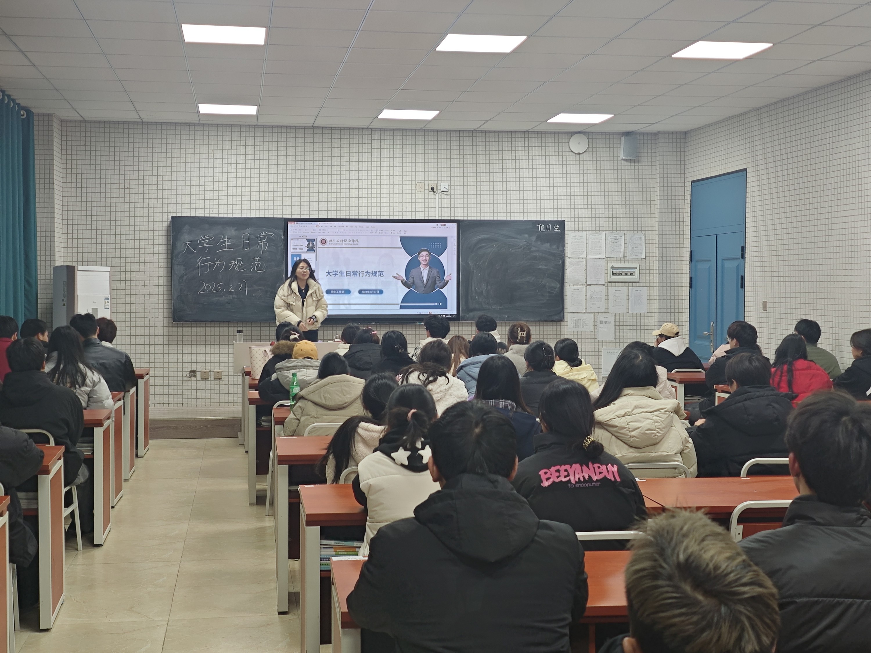 為加強(qiáng)學(xué)生行為規(guī)范教育,營造文明和諧的校園氛圍,健康學(xué)院于2025年2月27日19:00開展“大學(xué)生日常行為規(guī)范”主題班會。