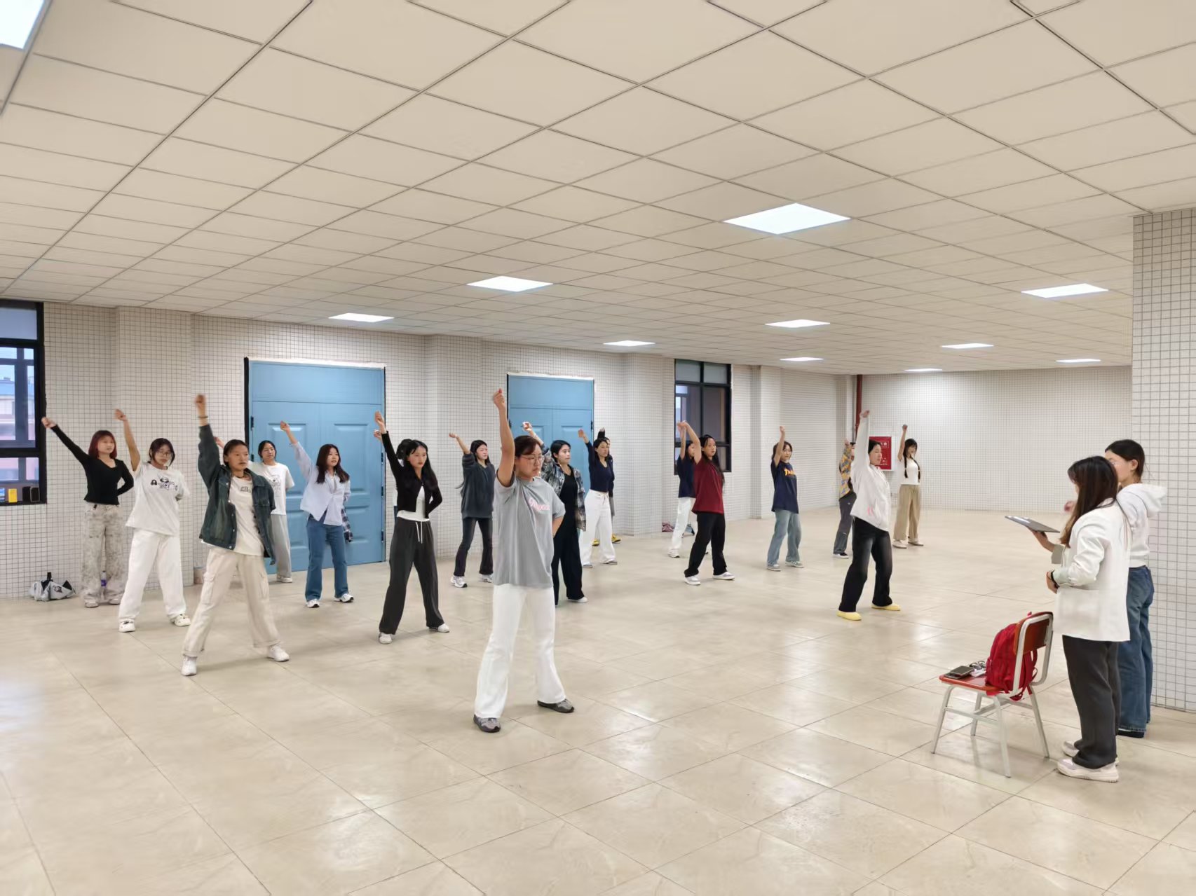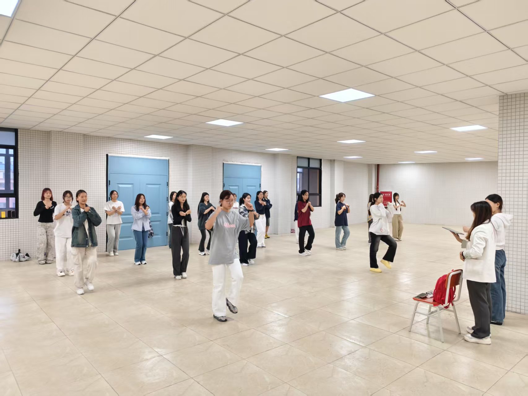 排練現(xiàn)場,同學們以飽滿的熱情和認真的態(tài)度投入到每一次動作練習中。整齊劃一的動作、飽滿的精神面貌,無不展現(xiàn)出他們對此次活動的熱情。在充滿活力的音樂當中,學院為努力排練的學生們提供最好的支持,貼心地為大家準備了飲料,鼓勵每位同學保持最佳訓練狀態(tài),展現(xiàn)出“軒昂出眾”的風采。