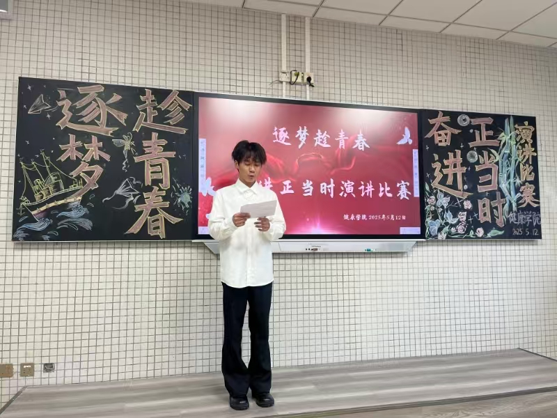為激勵健康學院學子們追逐青春夢想,激發(fā)奮進力量,2025年5月12日19:00,健康學院于5教413舉行“逐夢趁青春,奮進正當時”演講比賽。健康學院綜合辦公室主任唐瑤、團總支書記潘英鳳、輔導員李瓊、鮮晨陽參與。