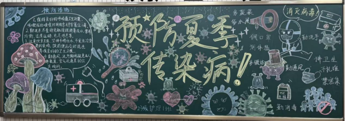 通過板報宣傳讓學生了解夏季常見傳染病的類型和特點,積極采取有效的預防措施,可以降低感染風險,保護自己和家人的健康。在享受夏日陽光的同時,做好健康守護的第一責任人。