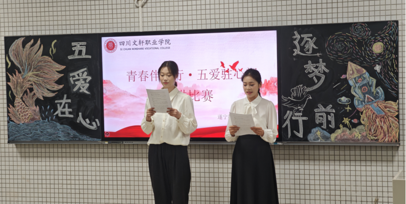 4月20日,四川文軒職業(yè)學(xué)院遂寧校區(qū)教育學(xué)院“青春伴我行·五愛駐心間”主題演講比賽決賽在2號教學(xué)樓109教室舉行。初賽中脫穎而出的優(yōu)秀選手齊聚舞臺(tái),以激情演講詮釋青春與“五愛教育”的內(nèi)涵。
