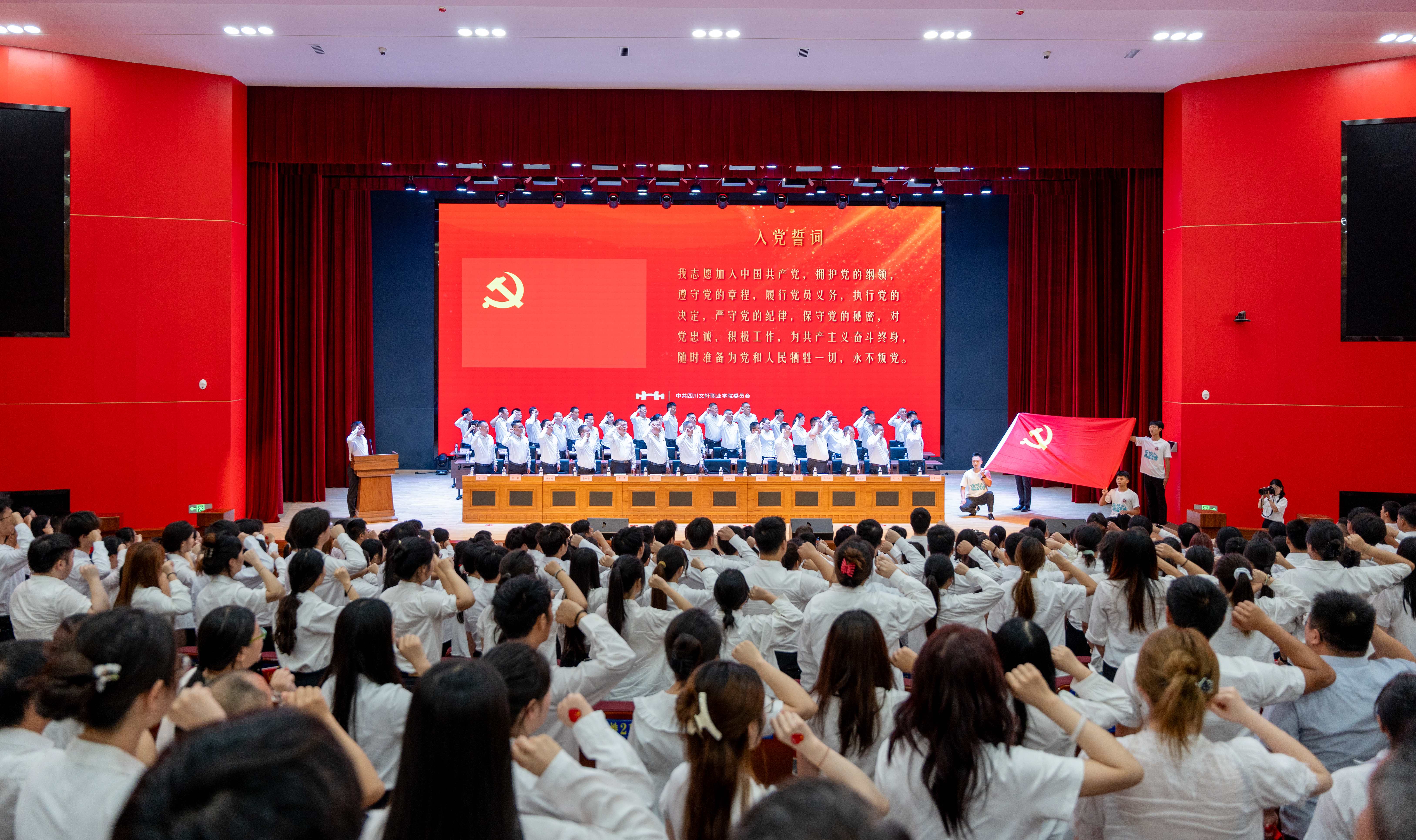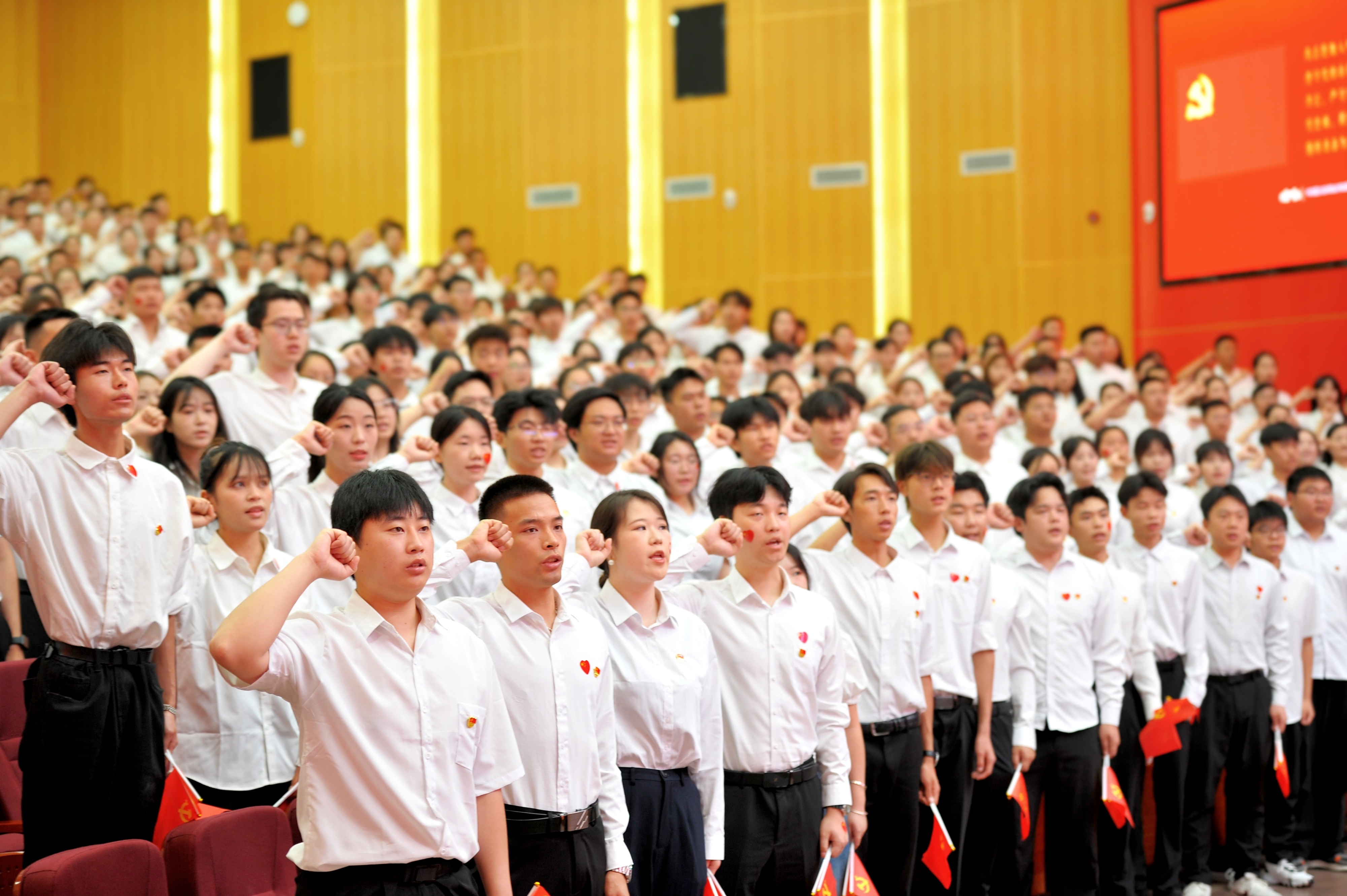在鮮紅的黨旗下,2025年春季學期發(fā)展的178名預備黨員面向黨旗莊嚴宣誓,黨員同志重溫入黨誓詞。李軍宣讀學校黨委《關(guān)于表彰2025年優(yōu)秀共產(chǎn)黨員、優(yōu)秀黨務(wù)工作者和先進基層黨組織的決定》,對馬克思主義學院黨總支等6個先進基層黨組織、龔婭琴等10名優(yōu)秀黨務(wù)工作者和張春雷等31名優(yōu)秀共產(chǎn)黨員予以表彰。