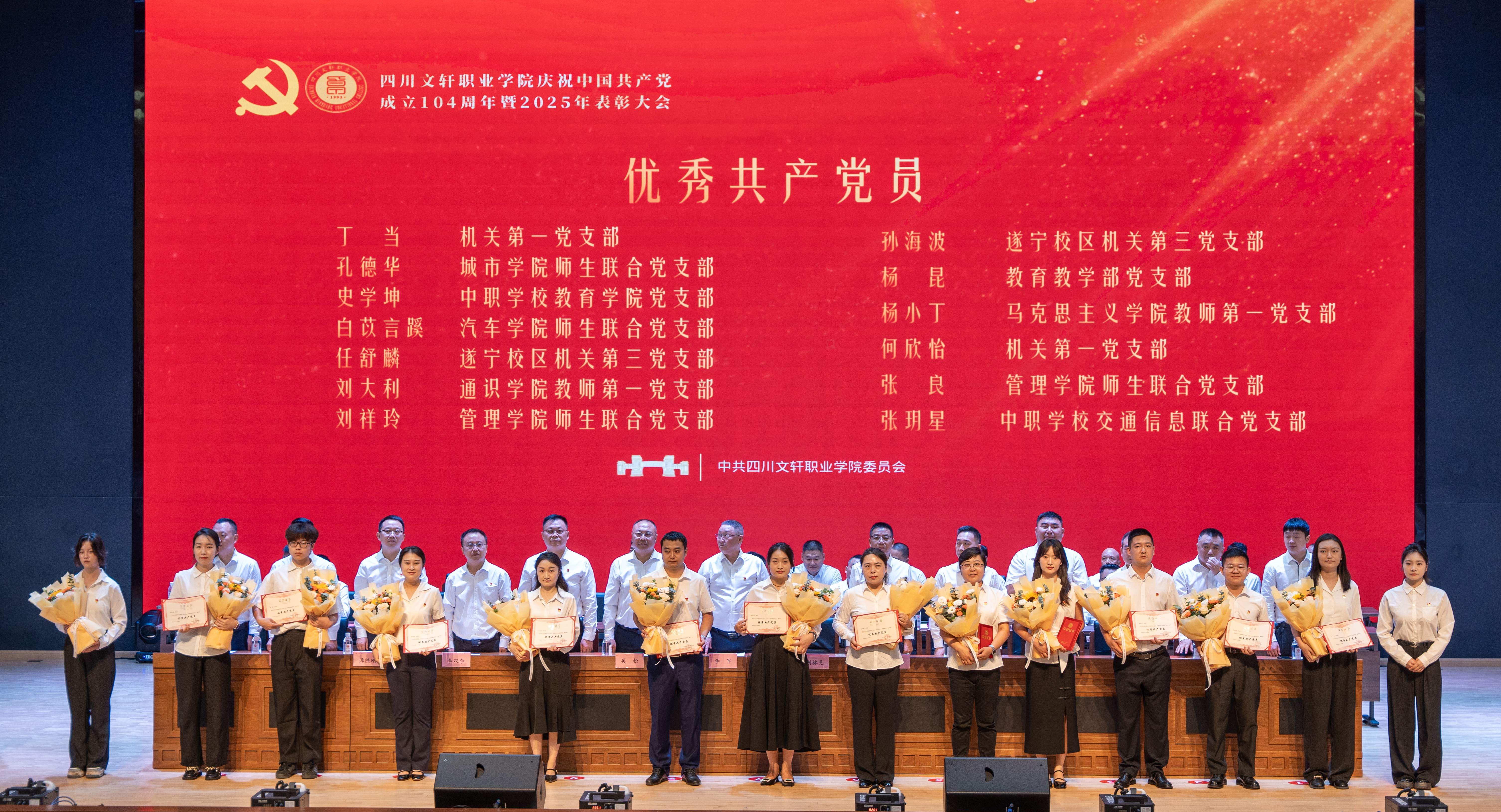 6月19日,學校在遂寧校區(qū)學術(shù)中心隆重舉行慶祝中國共產(chǎn)黨成立104周年暨“兩優(yōu)一先”表彰大會。黨委副書記、副校長謝林見主持大會,全體黨員齊聚一堂,慶祝黨的生日,黨委副書記、常務(wù)副校長李軍宣讀表彰決定并講話。
