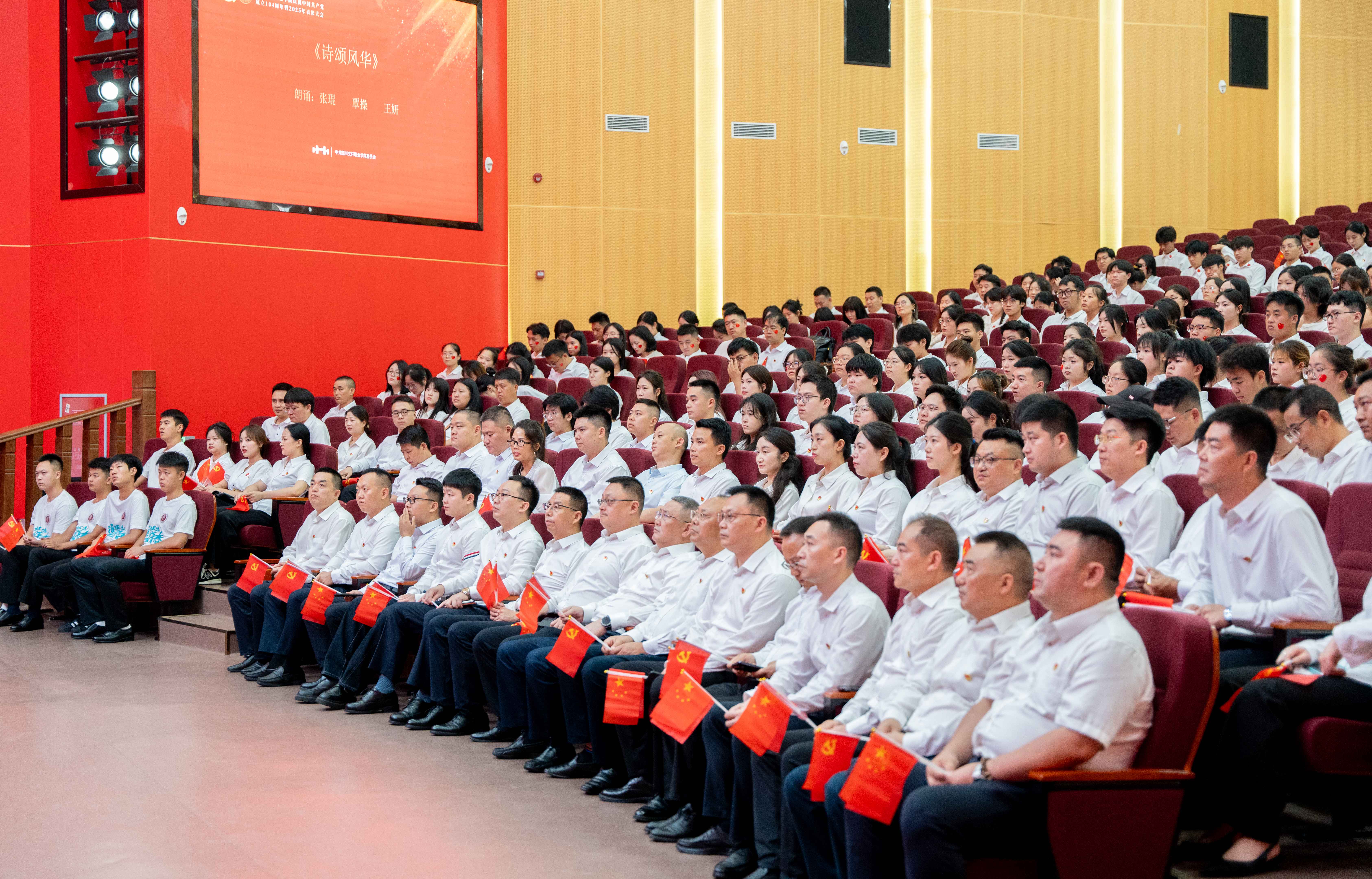 “百年征程風正勁,初心如磐啟新程”,大會以詩朗誦《詩頌風華》開篇,回顧了中國共產(chǎn)黨從嘉興南湖的小小紅船到領(lǐng)航中國行穩(wěn)致遠的巍巍巨輪的光輝歷程,展現(xiàn)了黨在百年奮斗中鑄就的偉大精神和不朽功勛。隨后,全體黨員和教師方隊、輔導員方隊、預備黨員方隊分別高唱《歌唱祖國》《團結(jié)就是力量》《我和我的祖國》《春天的故事》《不忘初心》《我們都是追夢人》,嘹亮歌聲表達了對黨和祖國的深情禮贊,唱出了全體黨員為黨育人、為國育才的初心使命與時代擔當。