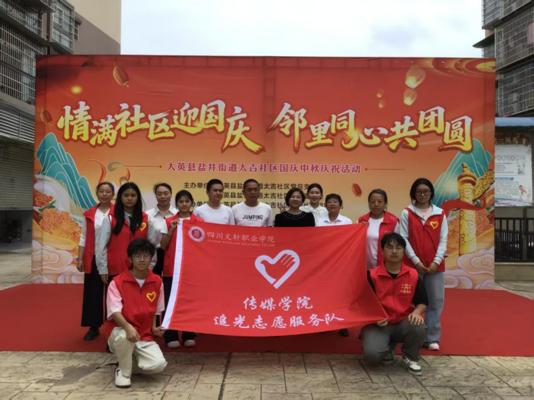 為慶祝國慶與中秋佳節(jié),傳媒學(xué)院于9月26日組織志愿者分別前往太吉社區(qū)和梨子壩社區(qū)開展主題志愿活動。