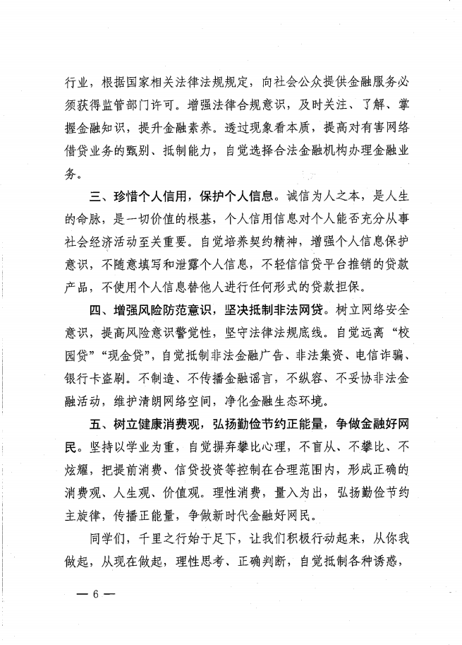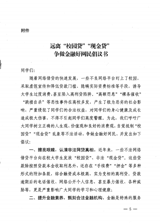 關(guān)于開展遠(yuǎn)離“校園貸”、“現(xiàn)金貸”爭做金融好網(wǎng)民倡議活動的通知
